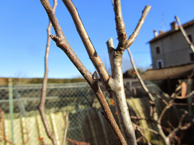 In inverno la pianta perde le foglie ed entra in riposo vegetativo, questa foto mette in primo piano un ramo con le sue gemme in Gennaio.